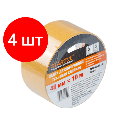 Комплект 4 штук, Лента двухсторонняя тканевая клейк. 48ммх10м STARTUL PROFI (ST9049-48-10)