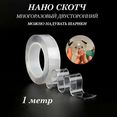 Нано-скотч двусторонний клейкий многоразовый, прозрачный, 2 м