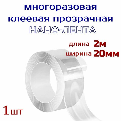 Нанолента многоразовая прозрачная шир.20 мм , длина 2м , клейкая лента / нано-скотч