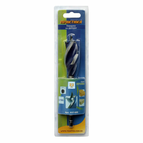 Сверло по дереву 3-х заходное ПРАКТИКА 22х165 мм