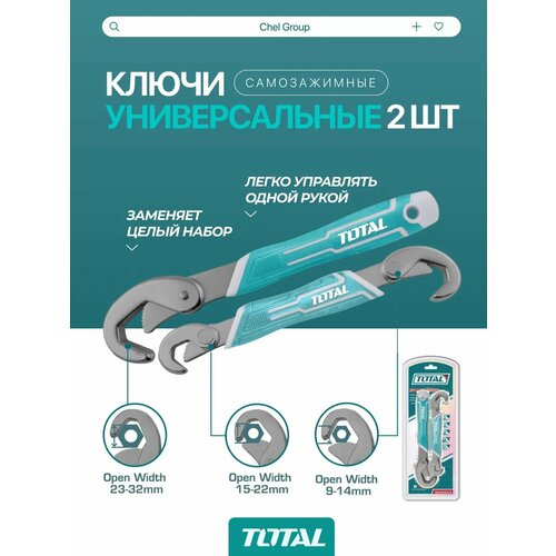 Гаечный ключ Total самозажимной, набор 2 шт, размер гаек 9-32 мм, стальной корпус