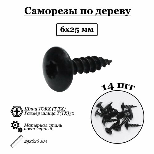 Саморез по дереву, 6х25 мм, 14 шт, черный