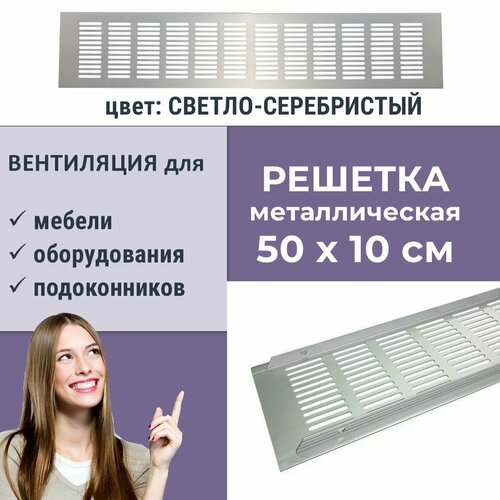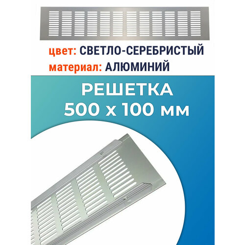 Решетка вентиляционная 500х100 мм, цвет светло-серебристый, алюминий