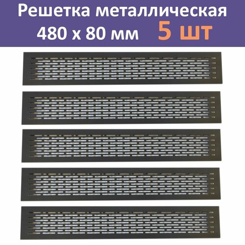 Лот 5 шт: Решетка вентиляционная 480х80 мм, алюминий, черная
