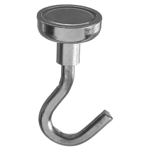Магнит неодимовый с крючком для авто, d 32 мм, сцепление 17 кг серебристый
