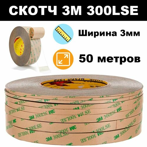 Скотч 3M 300LSE ширина 3мм 50 метров двухсторонний прозрачный для ремонта тачскрина телефонов смартфонов планшетов рулон 50м х 3мм