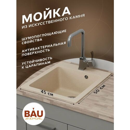 Мойка для кухни BAU Stil Sand 45х50, выпуск с сифоном в комплекте, песок