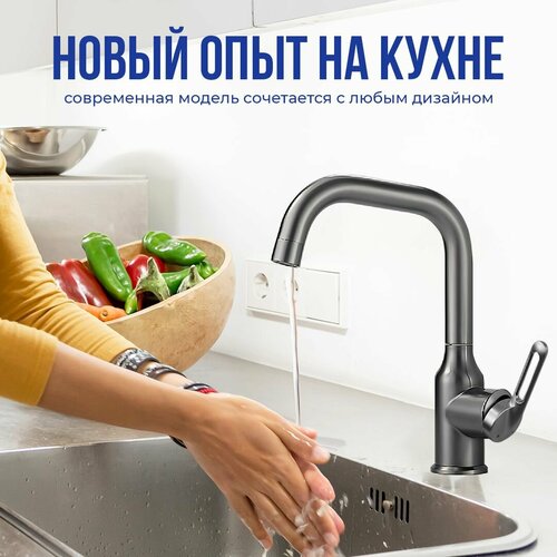 Смеситель для кухни HAIBA HB10825-3, оружейная сталь
