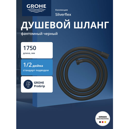 Душевой шланг GROHE Silverflex 1750 мм, с защитой от перекручивания, фантомный 28388KF1