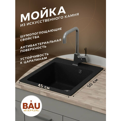 Мойка для кухни BAU Stil Black stone 45х50, выпуск с сифоном в комплекте, камень