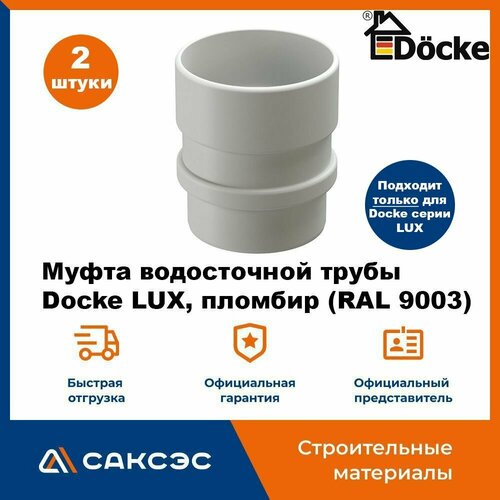 Муфта водосточной трубы Docke LUX, пломбир (RAL 9003) / Соединитель трубы водосточной Деке Люкс (2 шт в комплекте)