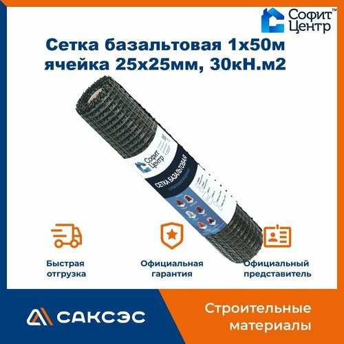 Сетка кладочная базальтовая для кладки блоков 1х50м, ячейка 25х25мм, 30кН. м2