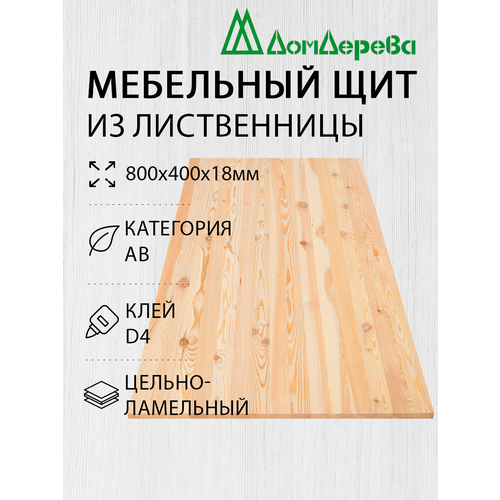 Мебельный щит "Дом Дерева" 800x400x18мм Лиственница АВ цельный