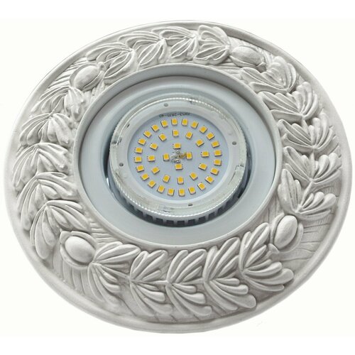 Ecola накладка широк. гипс."оливковый венок" для встр. св-ка GX53 H4 серебро на белом 23х195 FA53Z2EFT