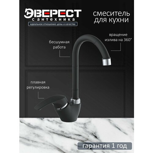 Смеситель для кухни Эверест B57-0336 с высоким поворотным изливом, кран на кухню, пластик