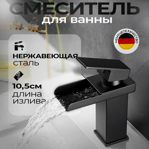 Смеситель для раковины из нержавеющей стали с каскадным изливом Netto Black матовый черный, кран для ванной