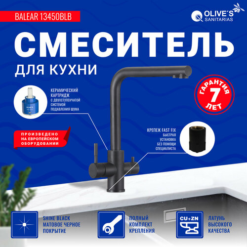 Смеситель Olives SANITARIAS BALEAR 13450BLB, с каналом питьевой воды, черный