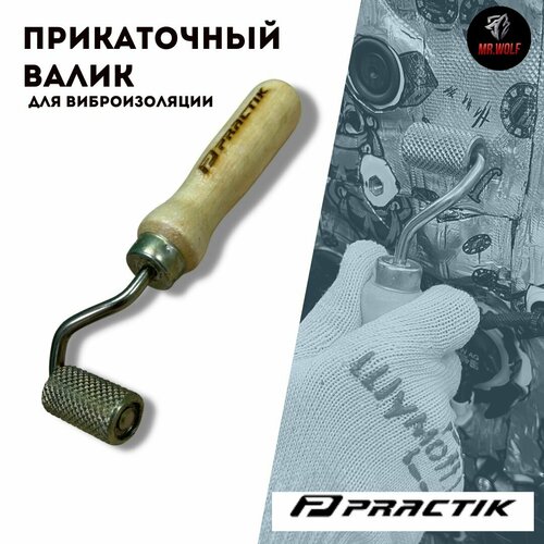 Валик прикаточный Practik, металлический вал, деревянная ручка, 185х35 мм