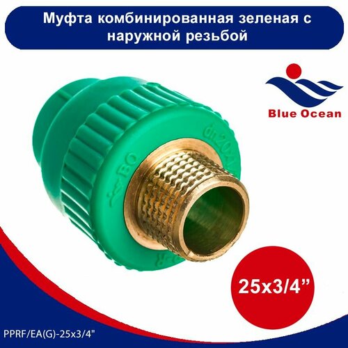 Муфта полипропиленовая Blue Ocean зеленая прямая комбинированная с наружной резьбой - 25х3/4"