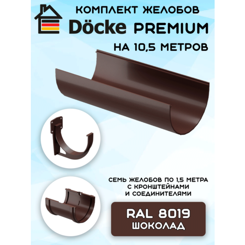 Комплект желобов водостока на 10,5 метров Docke Premium цвета шоколад (120мм/85мм) RAL 8019