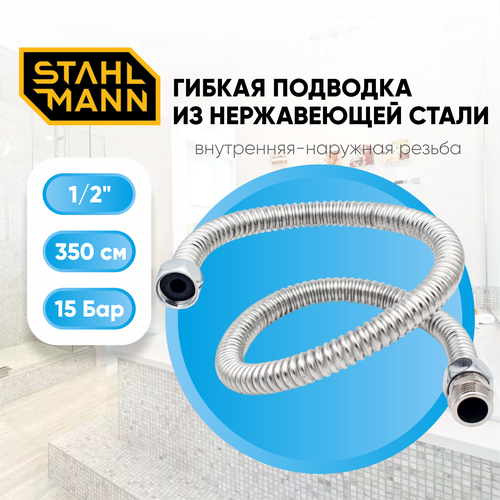 Гибкая подводка для воды 1/2" 350см из нержавеющей стали (гайка-штуцер)