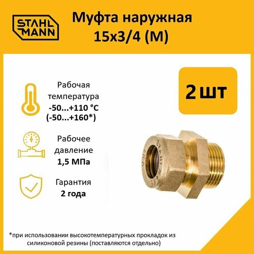 Комплект муфт соединительных для водопроводных труб Stahlmann M 15х3/4 EF, цвет желтый, 2 шт.