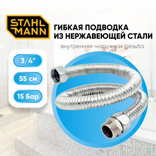 Гибкая подводка для воды 3/4" 55см из нержавеющей стали (гайка-штуцер)