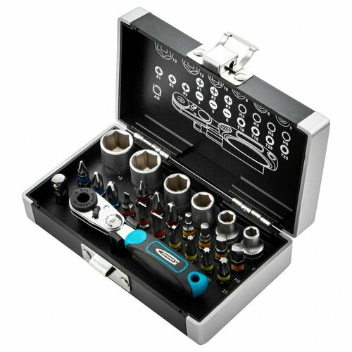 Набор бит и головок торцевых, 1/4, магнитный адаптер, сталь S2, пластиковый кейс, 26 предметов Gross 11361