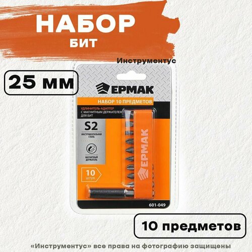 Набор бит 10 предметов: удлинитель-адаптер с магнитным держателем для бит; 9 бит длиной 25мм