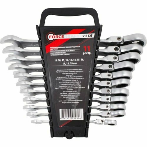 FORCEKRAFT Набор ключей комбинированных трещоточных с шарниром 11пр. в пластиковом держателе 51234