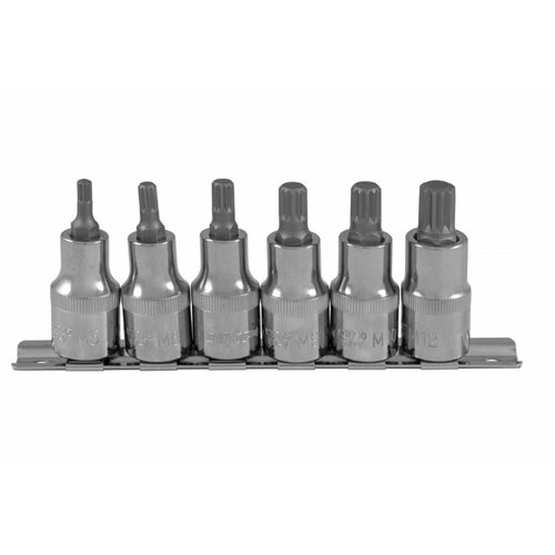 912706 Набор насадок торцевых 1/2"DR с вставками-битами SPLINE на держателе, M5-M12, 6 предметов. OMBRA