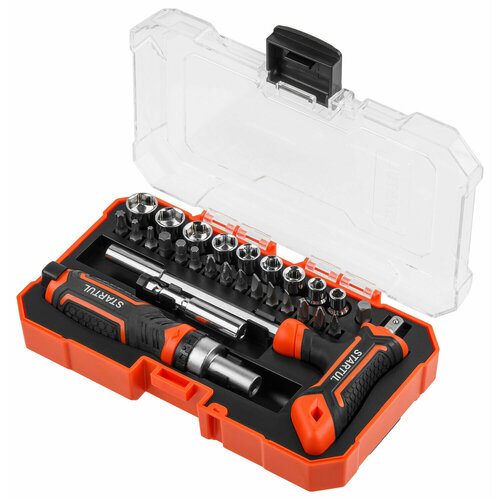 Отвертка реверсивная с набором бит и торцевых головок STARTUL Profi 28 предметов (ST3095-28)
