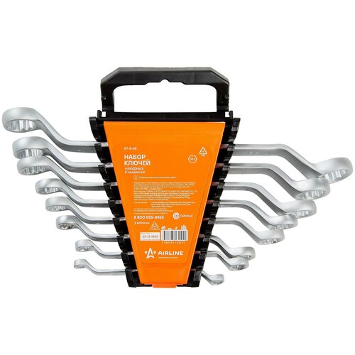 Набор ключей накидных с изгибом 8 предметов (6*7,8*9,10*11,12*13,14*15,16*17,18*19,20*22мм) пласт. держатель ATAH014 AIRLINE