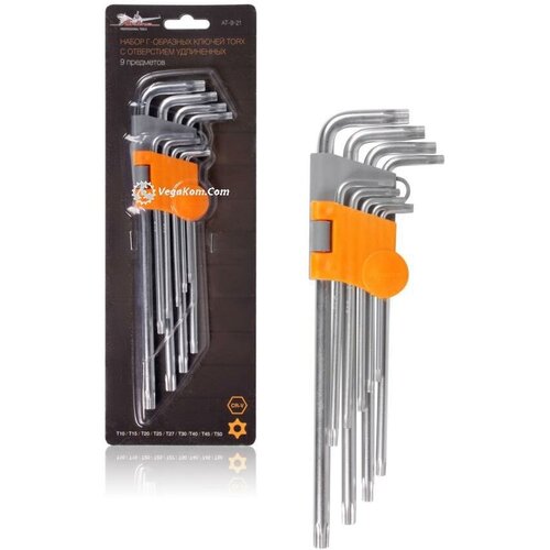 Набор Г-образных ключей TORX с отв. удлинённых 9 предметов (Т10, Т15, Т20, Т25, Т27, Т30, Т40, Т45, Т50) пласт. подвес AT921