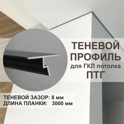 Теневой потолочный профиль для ГКЛ потолка OSKprofil ПТГ-8 чёрный 3 метра