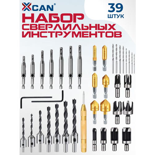 Набор сверлильных инструментов для деревообработки XCAN, сверло зенковочное, 39 шт.