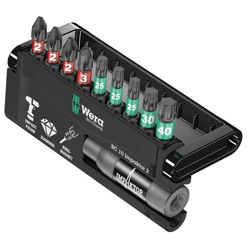 Набор ударных бит WERA Bit-Check 10 Impaktor 2, 10 предметов (битодержатель, PH, TX), WE-057682