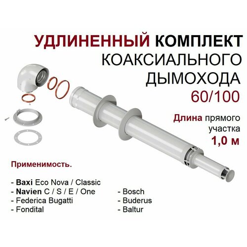 Коаксиальный комплект дымохода "Krats" 60/100 мм удлиненный (Bosch, Buderus, Navien S/C/E, Baxi ECO Nova/Classic, Federica Bugatti, Baltur, Fondital )