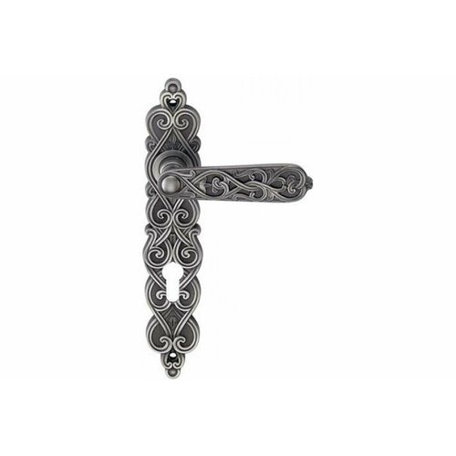 Ручка на планке ARCHIE под ключ. Цилиндр ARABESCO BL. SILVER (CL) Черненое серебро