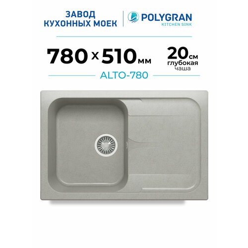 Мойка для кухни каменная POLYGRAN ALTO-780, Серая, Врезная, Квадратная, С крылом (Серый №14)