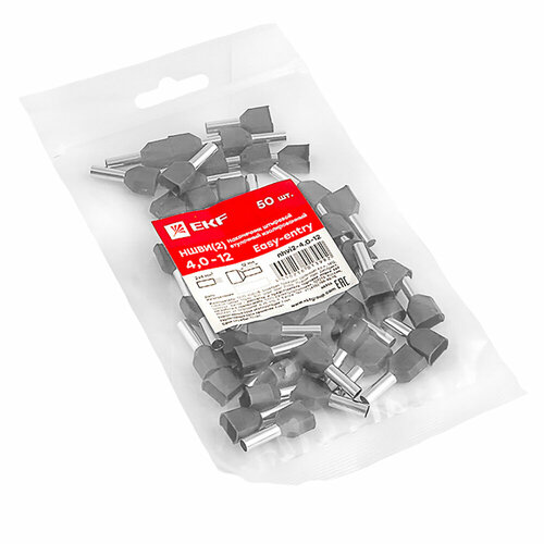 Наконечник штыревой втулочный изолированный EKF НШвИ(2) 4-12 двойной 50 шт