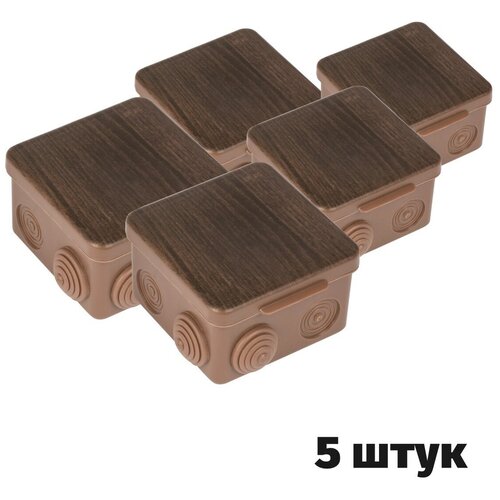 Коробка распределительная КМР-030-031 с крышкой (80х80х50) 7 мембранных вводов тёмное дерево IP54 EKF - 5штук