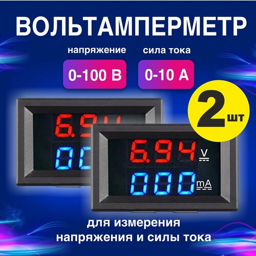 Rezer OT-INM01 вольтамперметр. Цифровой вольтметр амперметр DC 100 В. 10A. Автомобильный вольтамперметр. 2 шт