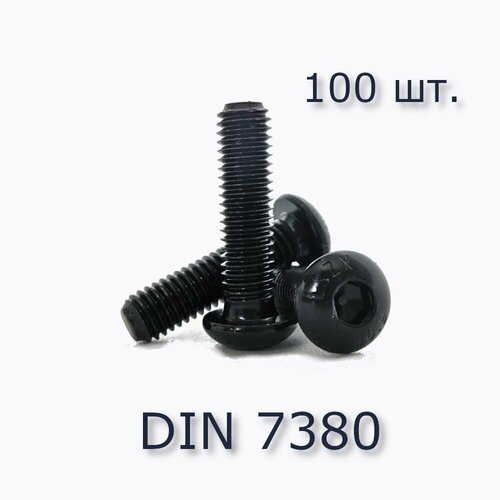 Винт с полукруглой головкой, М6х10, ISO 7380 / ГОСТ 28963-91, чёрный, под шестигранник, 100 шт.