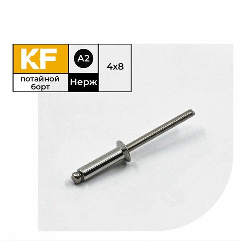 Заклепка вытяжная Нержавеющая с потайным бортиком 4X8 ISO 15984 А2 20 шт.