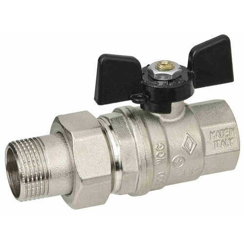 Кран шаровой латунный RTP с американкой (накидной гайкой) бабочка, вн/нар, PN 40, 3/4 дюйма