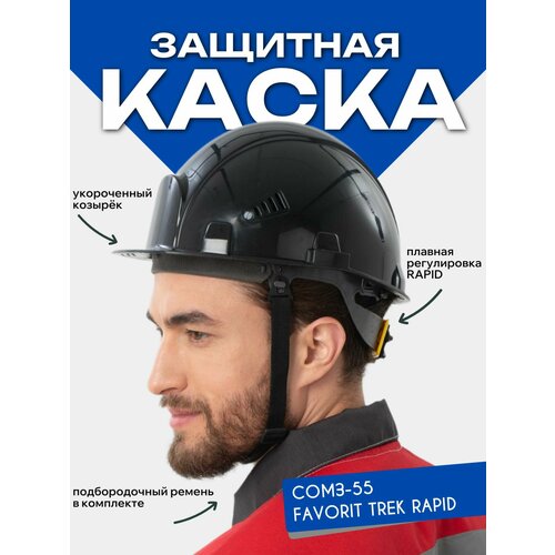 Каска строительная РОСОМЗ СОМЗ-55 FavoriТ Trek RAPID черная, храповый механизм, арт. 75620