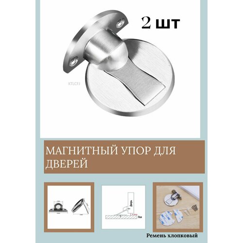 Дверной магнитный ограничитель напольного и настенного типа. Магнит притягивается к наконечнику штыря и удерживает дверь в открытом положении. Цвет матовый никель. Дверной ограничитель магнитный, скрытой установки можно устанавливать с помощью винтов либо самоклеющейся ленты.