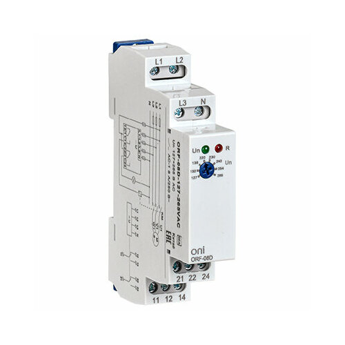 Реле контроля фаз ORF-08D 3 фазы 2 контакта 127-265В AC с контролем нейтрали IEK