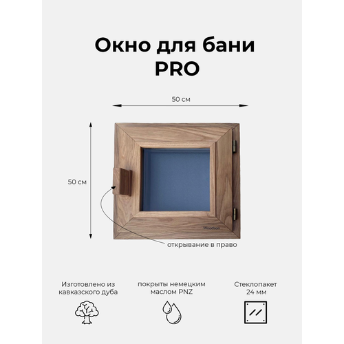 Деревянное окно Woodson Pro для бани и комнат отдыха из дуба, стеклопакет 24 мм цвета Gray, размеры окна 50х50 см
